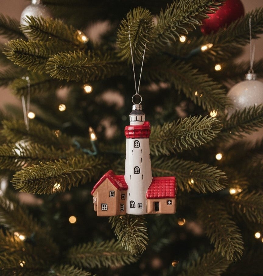 Het ornament is geblazen van glas en bestaat uit twee delen die tegen elkaar aan zijn gezet. Alleen zo konden we de hele vuurtoren in een ornament krijgen. Wederom in een luxe doos gelijk aan de rest van de set.