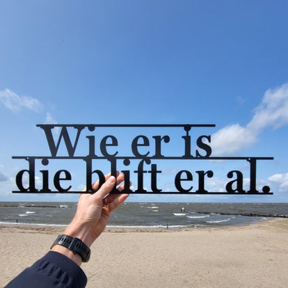 Een uniek bord met de laatste zin van het Urker volkslied.